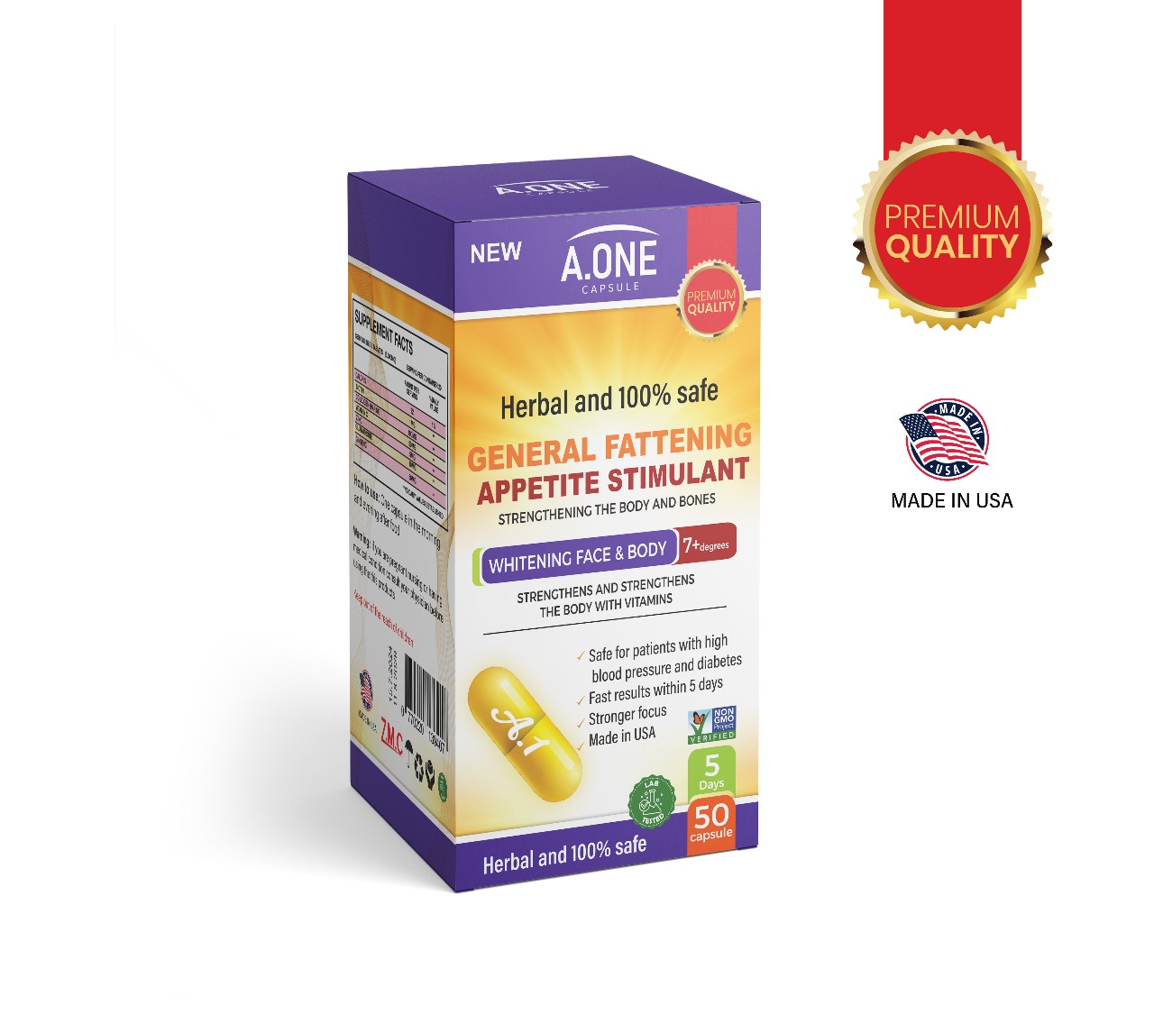 A.ONE capsules naturally work to gain weight by opening appetite and also whitening the skin consists of several natural herbs and its security elements